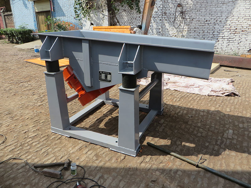 GZG系列振動(dòng)給料機(jī)是由給料槽、振動(dòng)電機(jī)和減振系統(tǒng)等組成。該系列給料機(jī)是采用振動(dòng)電機(jī)作為振動(dòng)源,固定在給料槽上的兩臺(tái)相同型號(hào)的振動(dòng)電機(jī)做相反方向自同步旋轉(zhuǎn),振動(dòng)電機(jī)所帶的偏心塊在旋轉(zhuǎn)時(shí)各個(gè)瞬間位置所產(chǎn)生的離心力之分力沿拋擲方向作往復(fù)運(yùn)動(dòng),使支承在減振器上的整個(gè)機(jī)體做直線振動(dòng),使物料在給料槽內(nèi)被拋起的同時(shí)向前作直線運(yùn)動(dòng),物料從入料端落入給料槽后,迅速前進(jìn),從而達(dá)到運(yùn)輸物料之目的。適用于貯料倉和料斗下快速排料或連續(xù)均勻地把物料輸送到受料裝置中,它廣泛應(yīng)用于冶金粉末、化工、肥料、磨料、醫(yī)藥、糧食、陶瓷、煤炭、耐火材料、建筑材料等行業(yè)。
